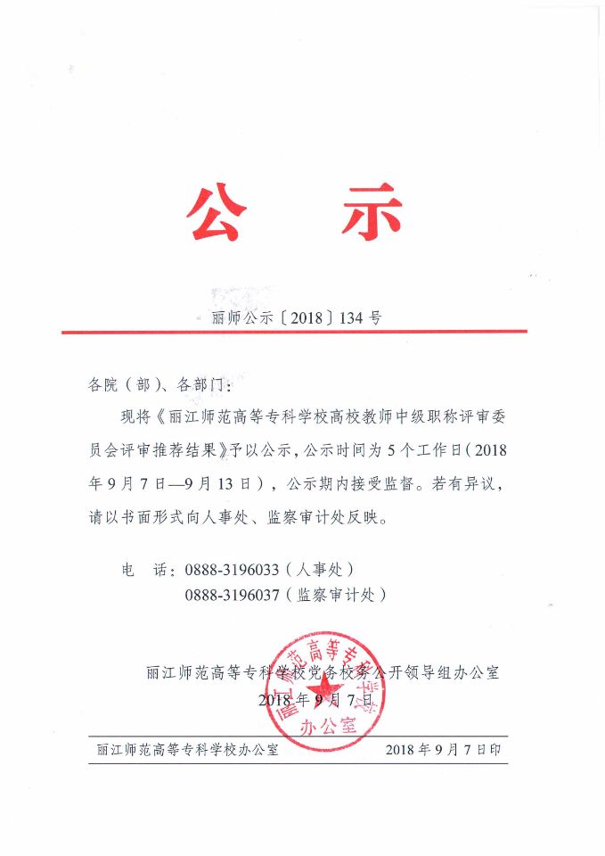 丽江师范高等专科学校高校教师中级职称评审委员会评审及评审推荐结果-讲师