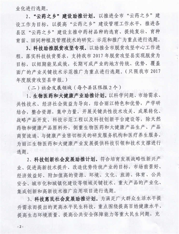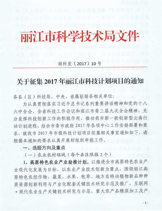 附件2:关于征集2017年丽江市科技计划项目的通知