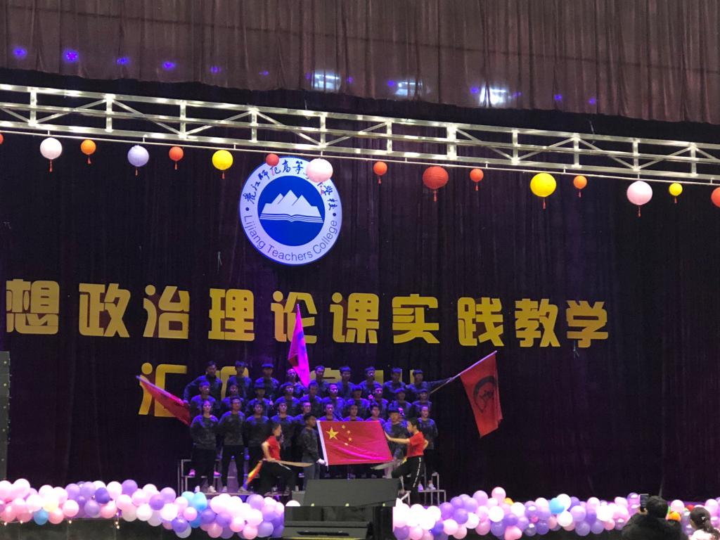 华灯初上,丽江师范高等专科学校体育馆内充满一股热闹气息。2018年12月14日晚七点整,由思政部主办,青年马克思主义学社承办的“2018年思想政治理论课实践教学暨弘扬社会主义核心价值观,培育法治思维汇报演出”活动正式拉开帷幕。学校党委副书记马云飞、校团委书记白杨作为特邀嘉宾,与思政部全体教师及2018级全体学生,均参加了此次活动。本次活动,由丽江师专2018级全体同学精心排演和参与,最终选取了12个班级的共13个节目。同学们纷纷通过舞蹈、歌唱等方式,展现了青春力量、青春风采以及当代大学生的激情活力。