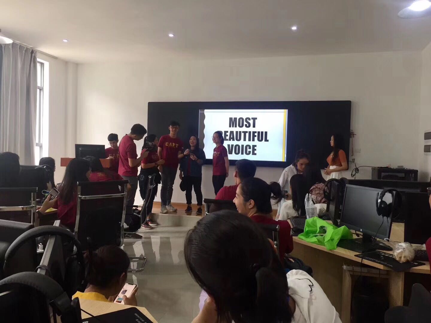 晚上的英力克晚会中,新加波同学与同学们互动活跃,参与游戏,交流地方特色。双方同学在愉快的节目中结束了此次的交流活动。
