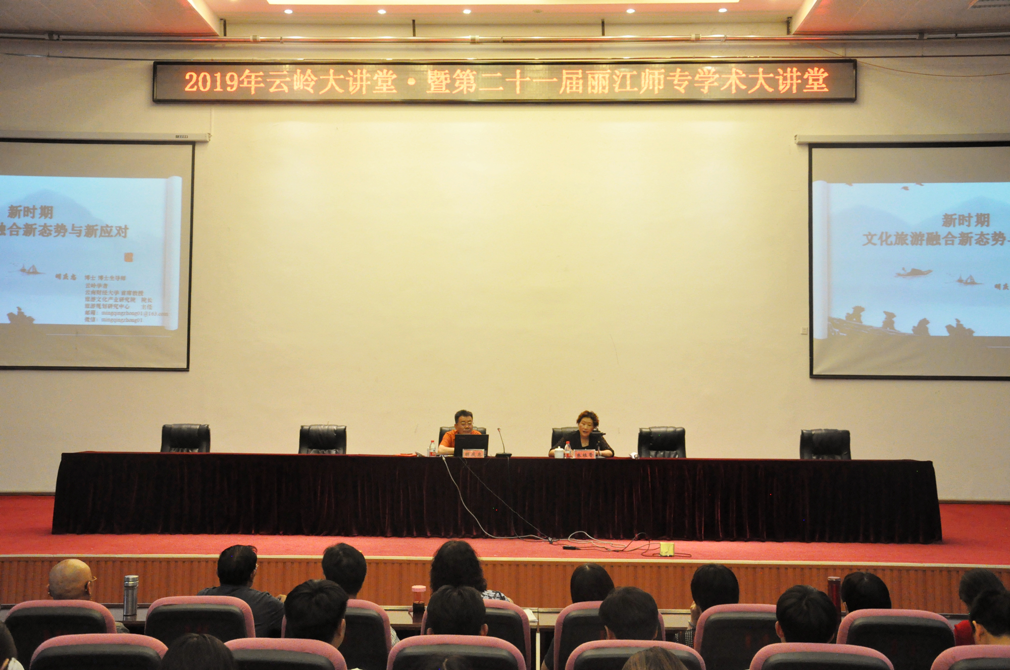 5月29日晚上,“2019年度云岭大讲堂·暨第二十届丽江师范高等专科学校学术讲坛”在williamhill图书馆报告厅举行。云南财经大学产业研究院院长、博士生导师明庆忠教授作了题为“新时期文化旅游融合新态势与新应对”的专题讲座,国际旅游与工商管理学院500余名师生聆听了讲座。讲座由学校朱桂香副校长主持。