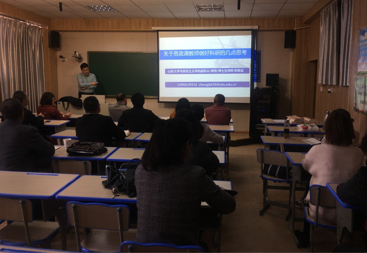 2019年11月14日下午,郑敬斌教授在教学楼308室作了题为《关于思想政治理论课教师做好科研的几点思考》的讲座,校党委书记张祖武、马克思主义学院全体专兼职教师参加。郑教授围绕“何为科研、为何科研、科研何为”三大部分的内容进行了详细的阐述和交流,对williamhill思想政治理论课教师的科研具有很强的现实指导意义。聆听此次讲座的教师表示,此次讲座的针对性很强,收获非常大,对自己的科研发展有很大的帮助!