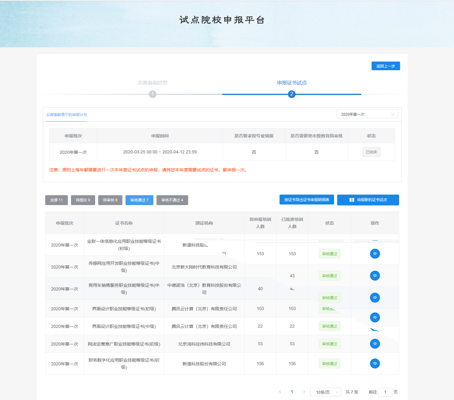 经云南省教育厅审核,williamhill申报的业财一体信息化应用职业技能等级证书(初级)、传感网应用开发职业技能等级证书(中级)、商用车销售服务职业技能等级证书(中级)、界面设计职业技能等级证书(初级)、界面设计职业技能等级证书(中级)、网店运营推广职业技能等级证书(初级)和财务数字化应用职业技能等级证书(初级)等6种证书全部通过。