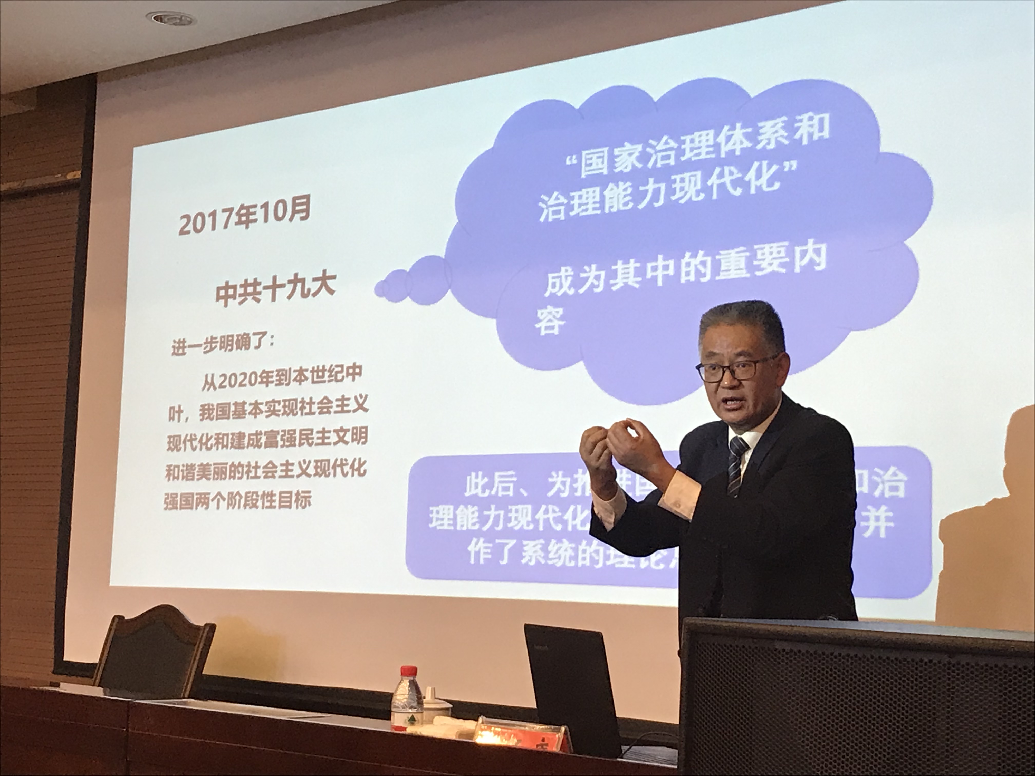 本次政治理论学习活动邀请了丽江市委党校和正康副教授作题为《加快推进大学治理体系和治理能力现代化的根本遵循——深化对习近平重要讲话和十九届四中全会等精神的学习领会与贯彻落实》的专题讲座。和正康老师紧密围绕习近平关于国家治理和教育现代化的重要论述、学习贯彻十九届四中全会等精神的再深化、加快推进高校治理体系和治理能力的现代化三个方面讲授,加深了教职工对习近平总书记重要讲话精神和十九届四中全会等精神的进一步理解。