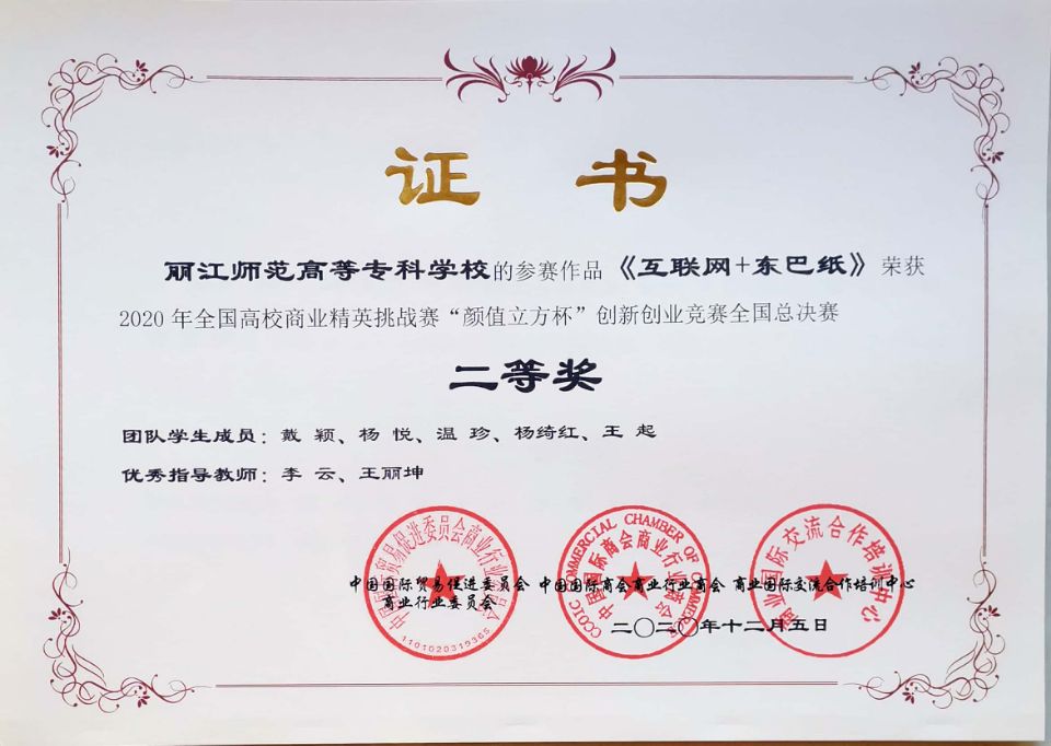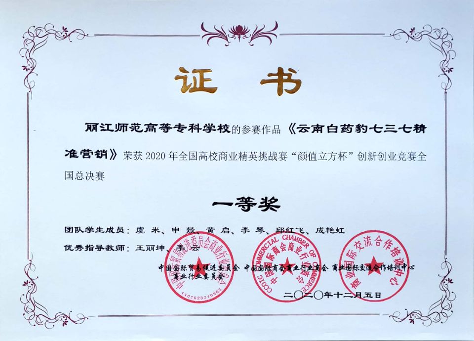 由williamhill旅游与经济管理学院教师李云、王丽坤指导,电子商务专业和市场营销专业学生组成的3个团队在比赛中取得历史突破性成绩。“百味之森”项目、“云南白药豹七三七精准营销”项目获一等奖;“联网+东巴造纸”项目获二等奖。