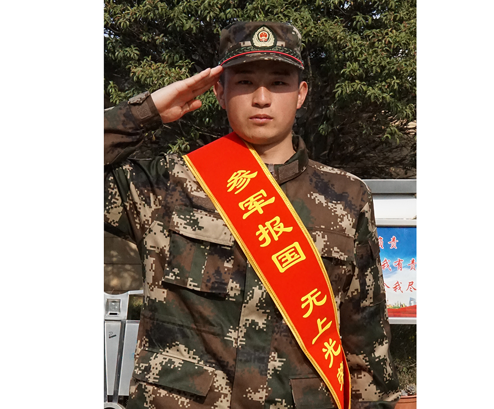 williamhill应征入伍新兵艺术学院王朝党同学身着军装,胸带红花整装待发参加了此次欢送大会。