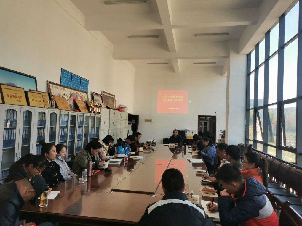 为了全面贯彻落实习近平总书记关于党风廉政建设的重要论述,深入推进全面从严治党工作,张兰胜副校长于2021年11月17日,到体育与健康学院进行党风廉政专题指导,推动“清廉校园”建设,积极构建“学校清廉、教师廉洁、学生崇廉”的格局。