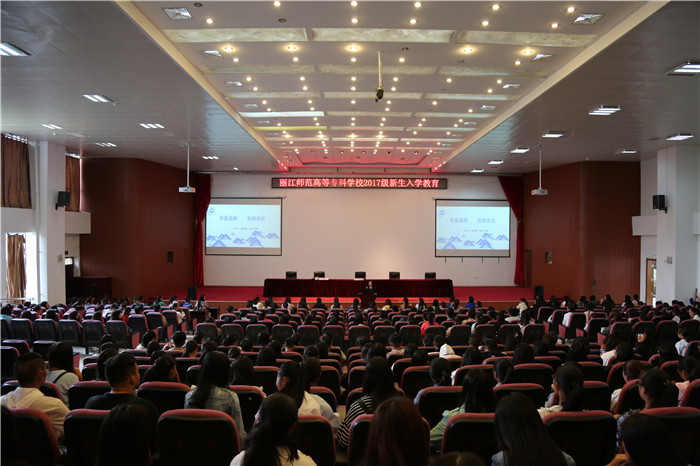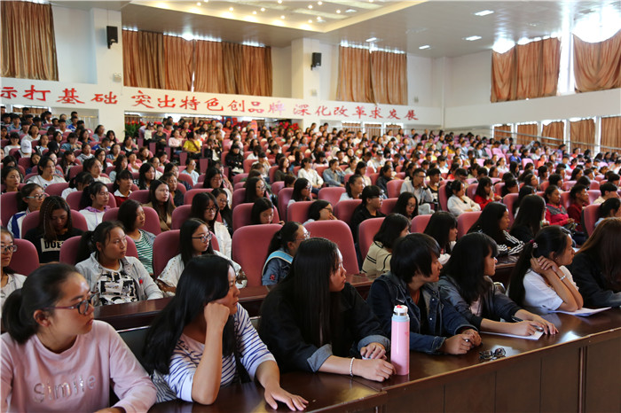张校长向同学们介绍了学校发展历史、办学特色、学院和专业学科设置情况、人才培养方案以及大学生活需注意的事项等,使同学们全方位了解了学校。与同学们分享了两句话,一是“选择一座城市,就是选择一种生活方式”,介绍了丽江三项世界遗产,告诉同学们丽江有着丰富多彩的民族文化、优美的自然风光,等着大家去探索了解。希望大家能够融入丽江,今后为丽江的经济社会文化发展做出贡献。二是“选择一所大学,就是选择一种学习方式”,告诉同学们要以自己是一名丽江师专学子而感到自豪,热爱校园,树立正确的人生观、价值观、世界观、恋爱观,开启自己精彩的大学生活。张校长语重心长、风趣幽默的讲话,为2017级新生开启大学生活提出了良好的建议,她希望每一位同学珍惜大学时光,把自己塑造成为德智体美全面发展的合格大学生。