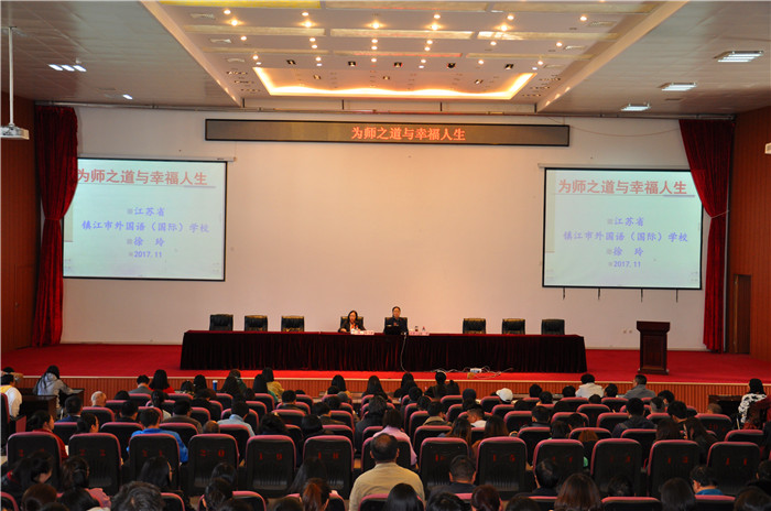 11月2日下午15:00,中国青少年传统文化研究院首批国家级研究员、镇江市外国语学校副校长徐玲在williamhill图书馆报告厅作了题为“为师之道与幸福人生”的专题报告会,张洪波校长主持报告会,副校长朱桂香和300余名师生代表参加报告会。