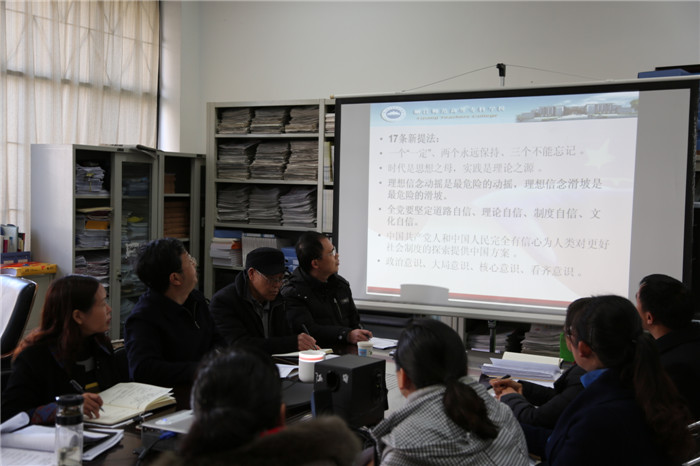 校长张洪波作交流发言,她说思政部教师要积极学习、领会国家最新的方针、政策,尤其是习近平系列重要讲话精神。对教材要积极充实、丰富,在教学效果方面要注重实效性、针对性,努力把实践教学搞好。同时在williamhill的党建及民族团结教育理论文章总结方面,思想部要加大力度,有所作为。在加强师资队伍建设过程中,注重师德师风的教育。
