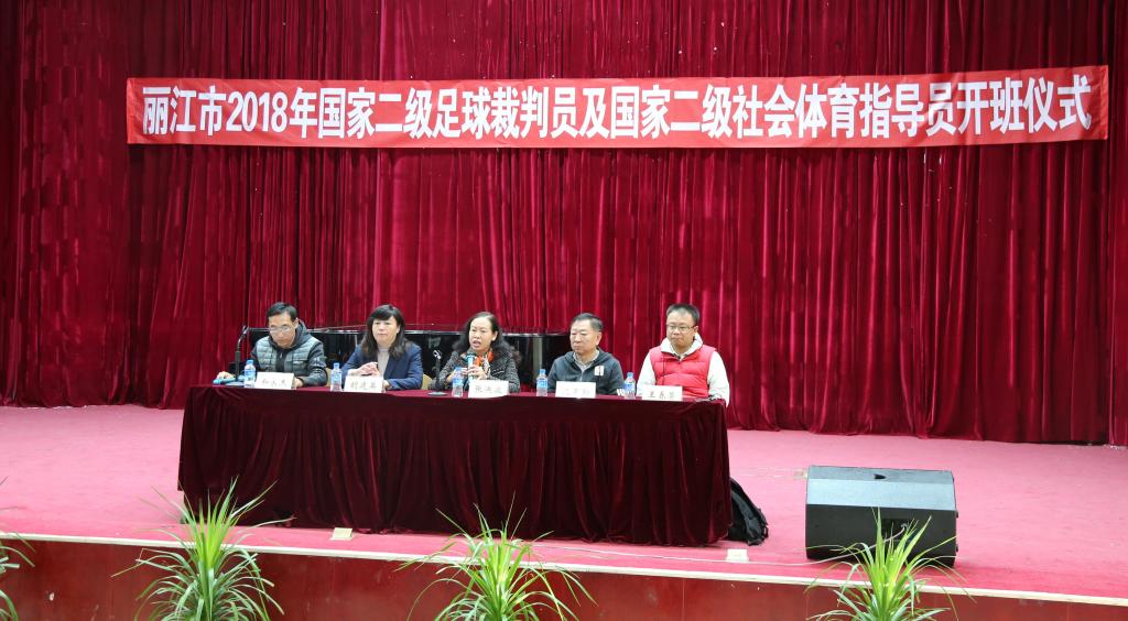 2018年10月27日,“2018年丽江市国家二级足球裁判员暨国家二级社会体育指导员培训班”在丽江师范高等专科学校艺术楼演播厅举行开班仪式。