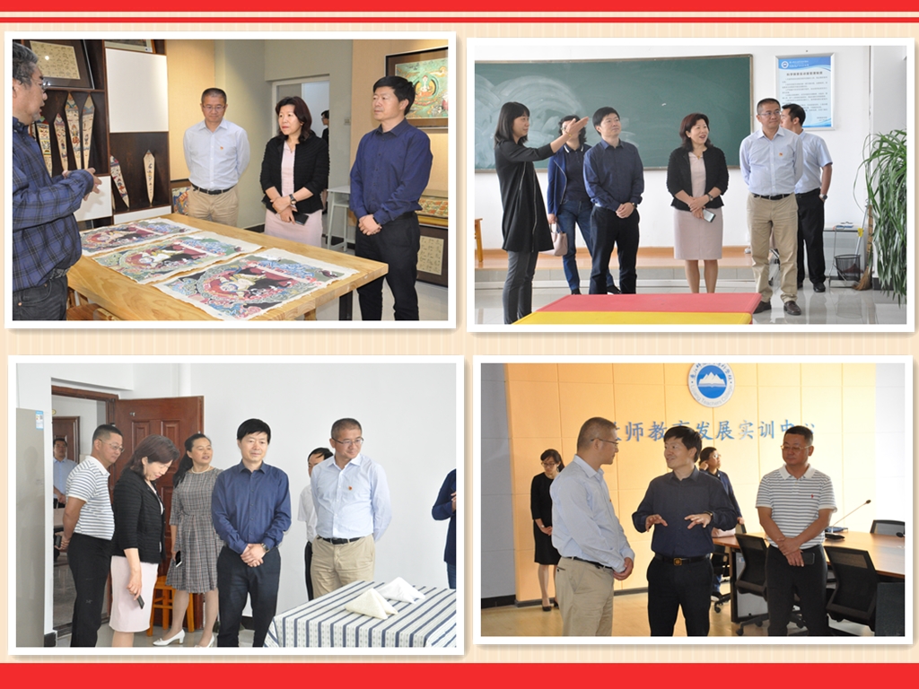 王永全一行首先来到图书馆,参观学校规划沙盘模型,听取学校整体建设和发展情况的有关介绍,随后来到滇西北民族艺术传承基地、学前教育实训中心、英语专业群英力克实训基地和教师教育发展实训中心,了解williamhill专业建设及发展情况。