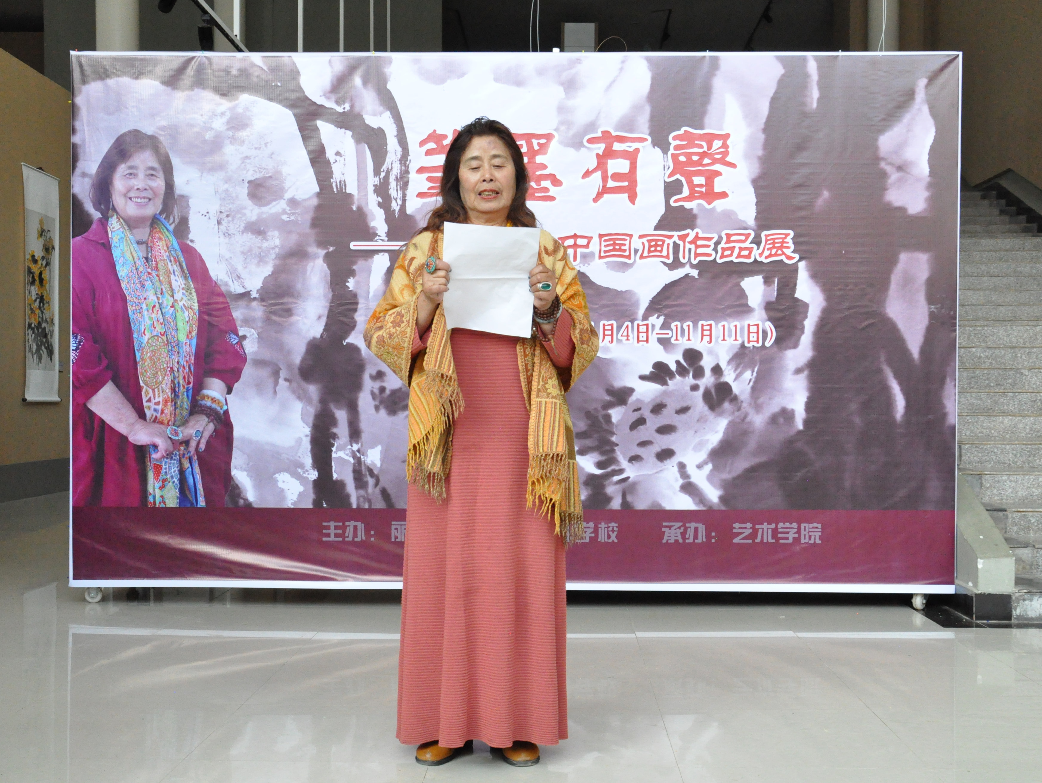 艺术学院院长和爱东老师宣布书画展开幕。