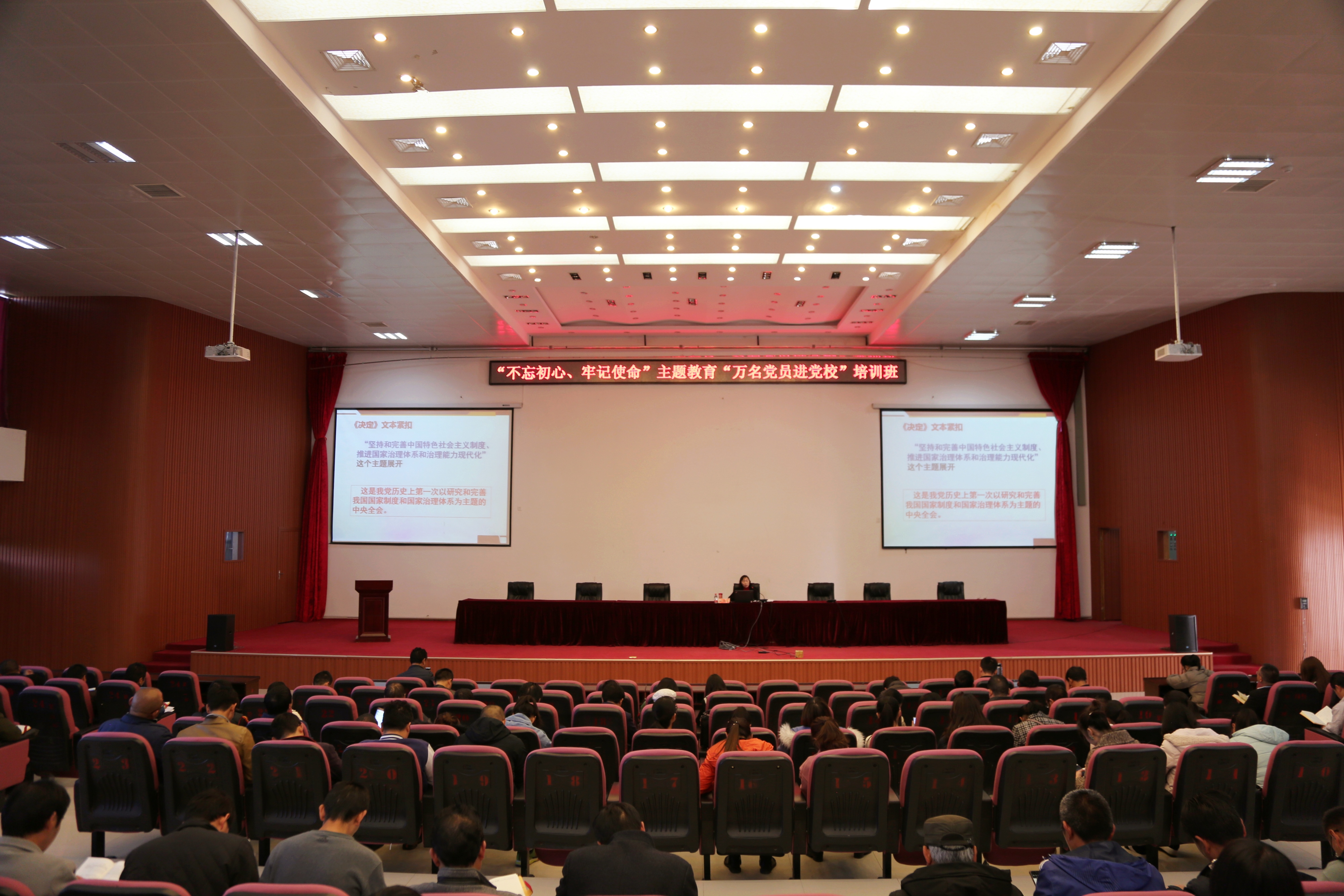11月29日下午,学习贯彻党的十九届四中全会精神丽江市委宣讲团成员柳传珍副教授应邀到williamhill宣讲党的十九届四中全会精神。此次宣讲也作为“不忘初心、牢记使命”主题教育“万名党员进党校”培训班的重点内容之一,200余名党员同志、入党积极分子到会聆听。