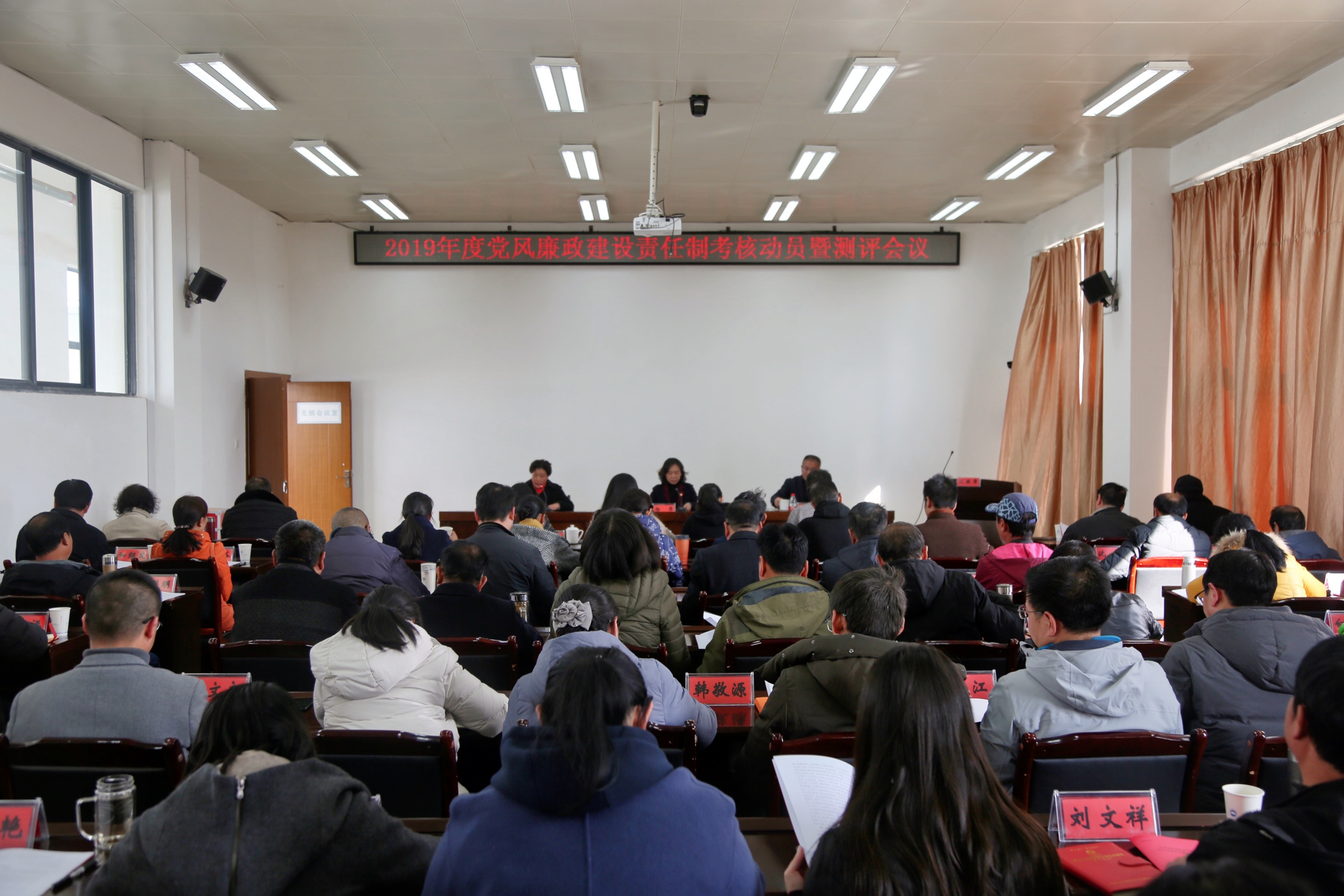 为深入贯彻党的十九大精神,落实全面从严治党要求,确保全面从严治党主体责任、监督责任落到实处、收到实效。12月17日下午,williamhill2019年度党风廉政建设责任制检查考核动员及民主测评大会在第四会议室召开。省属高校党风廉政建设责任制检查考核组第十一组组长、文山学院党委委员、纪委书记杨萍出席会议并作动员讲话。党委书记张祖武代表学校作报告,会议由副校长朱桂香主持。学校党政领导班子成员、机关处(室)正副职干部、学院党政主要负责人、民主党派人士、离退休老干部、一般干部、教职工代表参加会议。