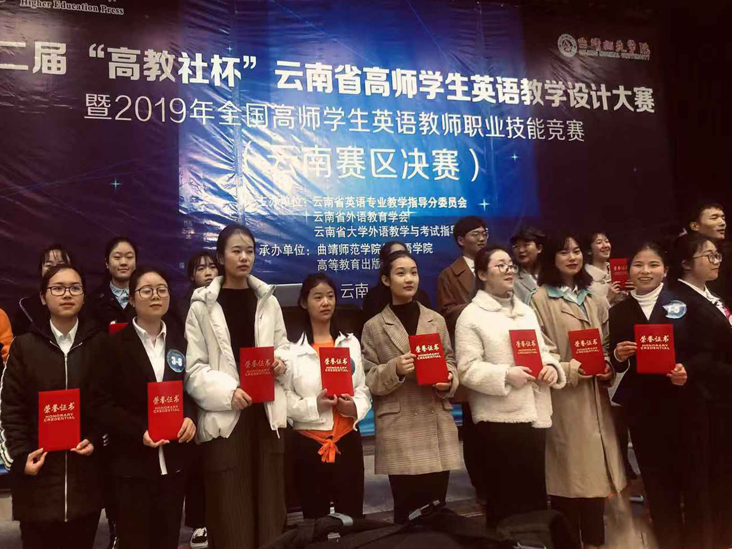 12月27日至28日,由全国高等师范院校外语教学与研究协作组、云南省英语专业教学指导分委员会、云南省外语教育学会、云南省大学外语教学与考试指导委员会主办,曲靖师范学院外国语学院、高等教育出版社承办的“第二届‘高教社杯’云南省高师学生英语教学设计大赛暨2019年全国高师学生英语教师职业技能竞赛(云南赛区决赛)”在曲靖师范学院圆满落幕。