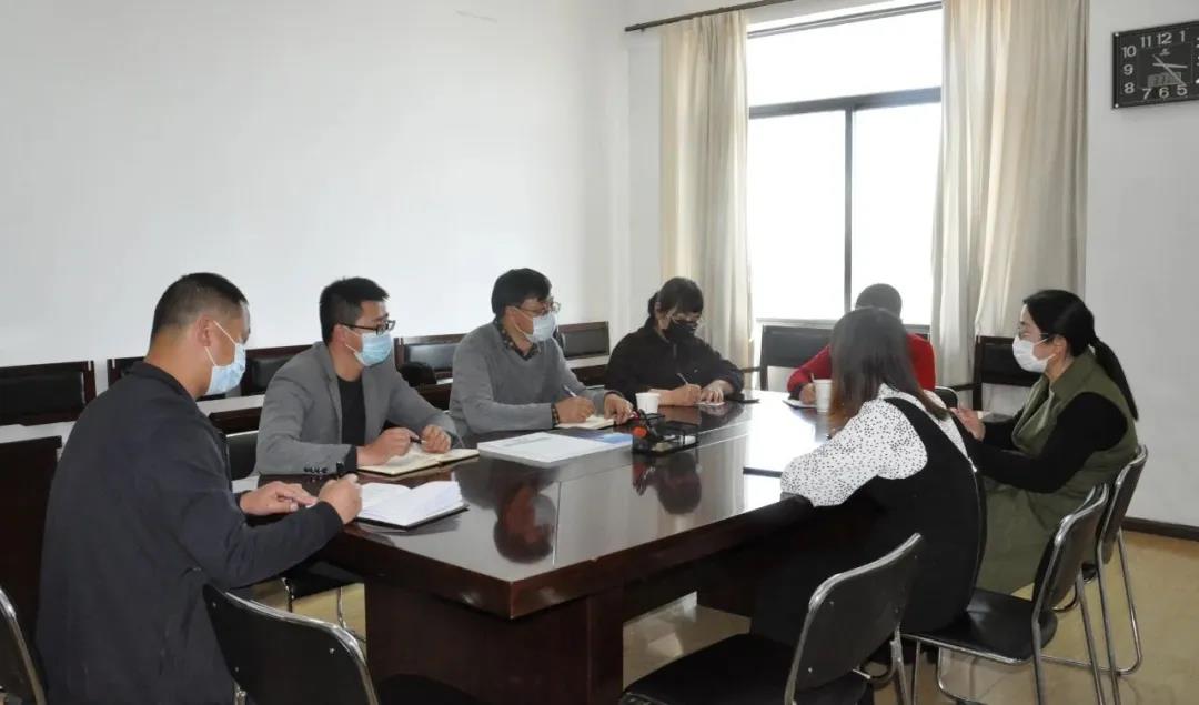 李渝丽一行详细了解了学校疫情防控工作、物资准备等相关情况。毕天云详细全面介绍了学校复工复学准备情况,从行政上班、线上教学、校园安全保卫、隔离区建设、宿舍食堂准备等方面。