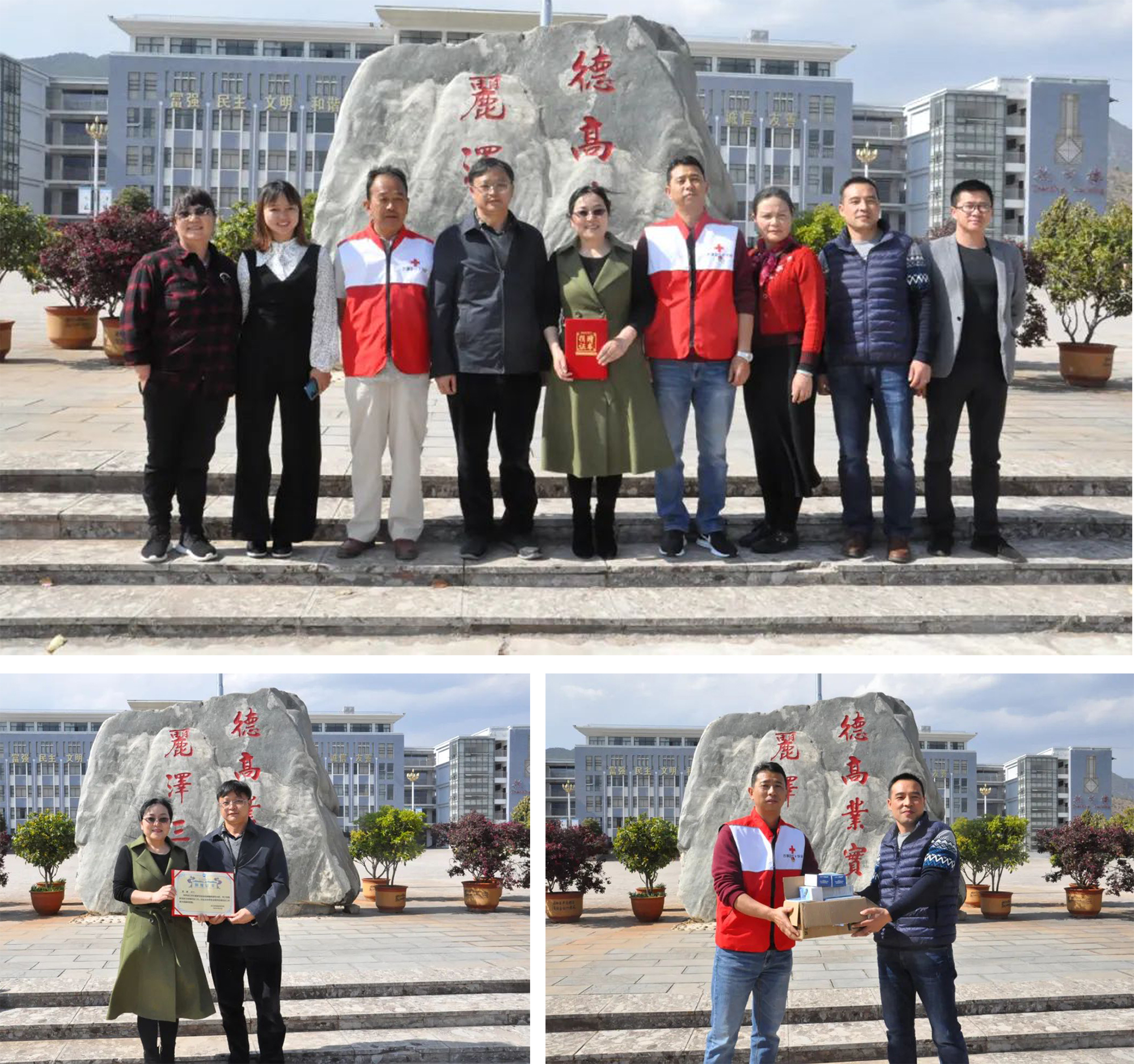 3月31日下午,丽江市政协副主席、民进丽江支部主委李渝丽,古城区红十字会常务副会长和慕华一行,受丽江籍企业家、民进社员罗樱女士委托,到williamhill捐赠20把体温枪。校长毕天云代表学校接受捐赠。