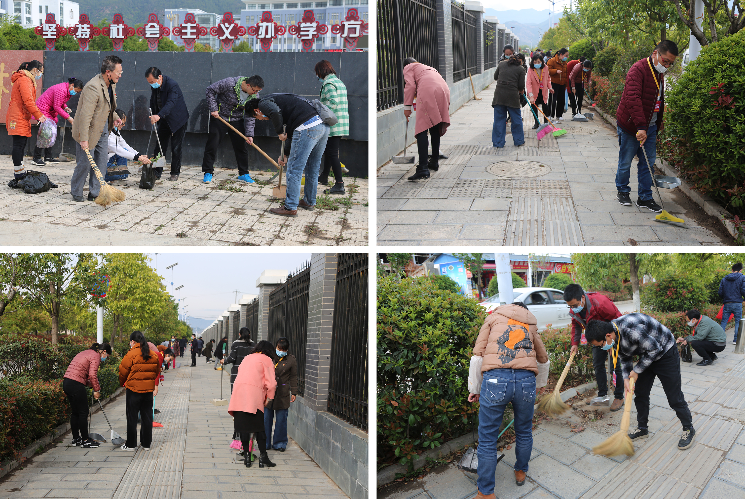 校园内外都是师生员工共同学习和生活之所,干净整洁的校园需要大家共同维护。疫情防控期间,学校组建党员先锋队,以党总支为单位组建,先锋队以实际行动践行初心使命,以担当作为为党旗增辉添彩.通过清扫校园活动,进一步激发广大师生的文明意识和责任意识,带动广大师生以主人翁的姿态自觉维护和建设美丽校园,为学校建设文明校园、丽江市创建全国文明城市贡献力量。