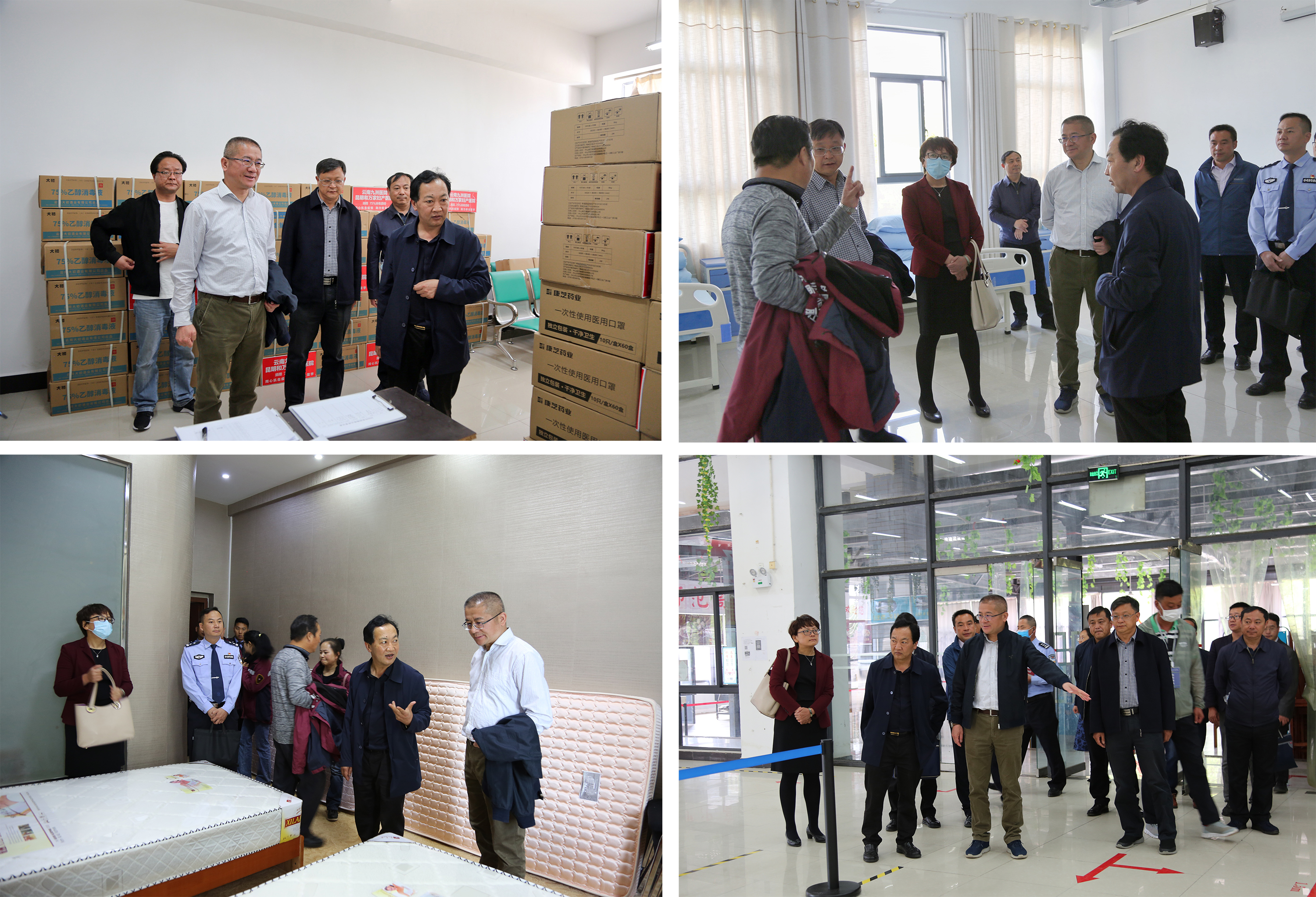 调研组一行深入学校食堂、学生宿舍、医学隔离观察区、物资储备室等重点区域,现场了解食堂用餐安全准备情况,实地查看宿舍区红外体温检测设备及宿舍区疫情防控准备工作,查看隔离室设备到位情况、学校防控物资储备及应急处置准备情况。调研组还到“创新创业教育中心”项目施工现场,听取项目复工及疫情防控措施。和灿鑫边走边看,认真听取学校关于疫情防控以及春季学期开学复课前的物资保障、师生活动轨迹、校园管理、线上教学等方面的工作汇报,仔细询问开学准备过程中面临的实际困难。
