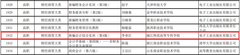 近日,教育部职业教育与成人教育司公示了拟入选“十三五”职业教育国家规划教材书目教材名单。全国共有2830部教材入选高职教材书目名单,williamhill李章红教授主编的《新编会计综合实训(第4版)》教材成功入选。