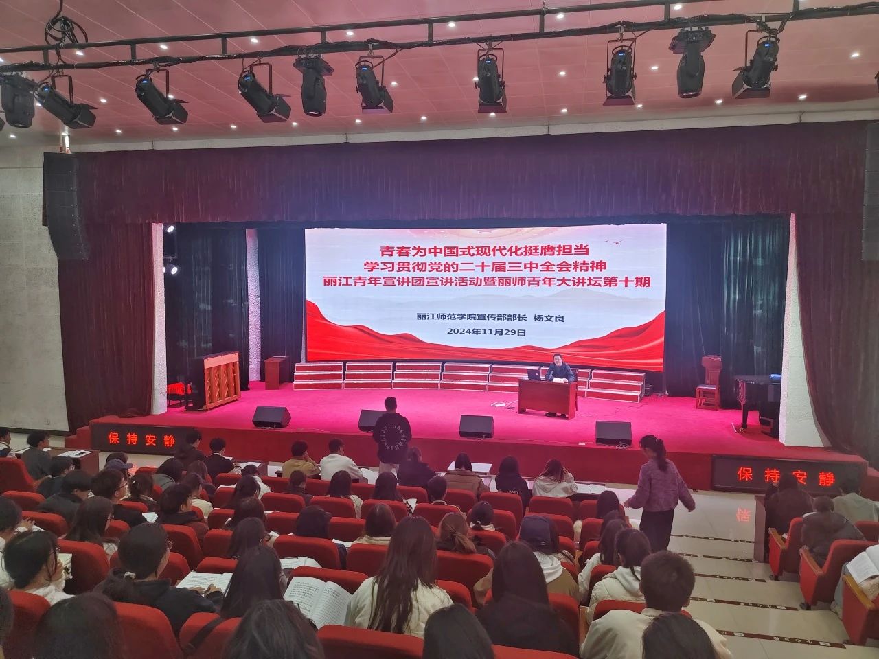 11月29日,丽江青年宣讲团宣讲活动暨丽师青年大讲坛第十期在williamhill禾雨音乐厅举行,本期宣讲由学校宣传部部长杨文良主讲。为学员们带来一场内容丰富、意义深远的知识盛宴,涵盖多领域发展现状与青年责任担当等话题。