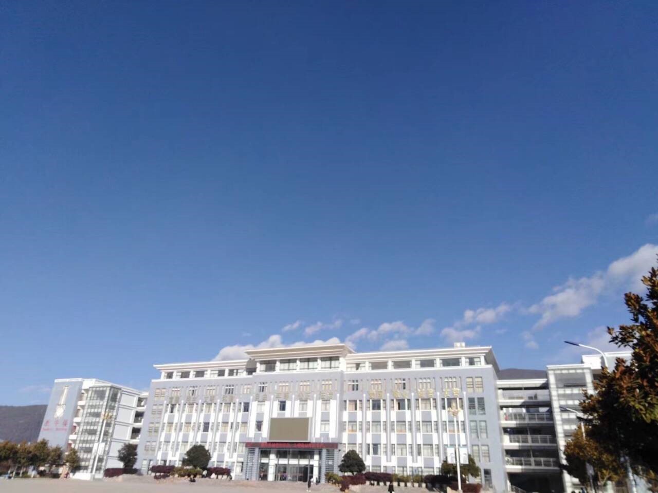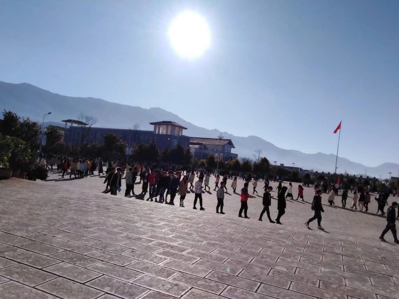作品说明:在上面我所拍的图片中展示了我的学校–丽江师范高等专科学校的气派不凡,之所以选择这些照片是因为:在如此强烈的阳光下 依旧有很多同学坚持打跳和跑步,这正是学校的功劳。