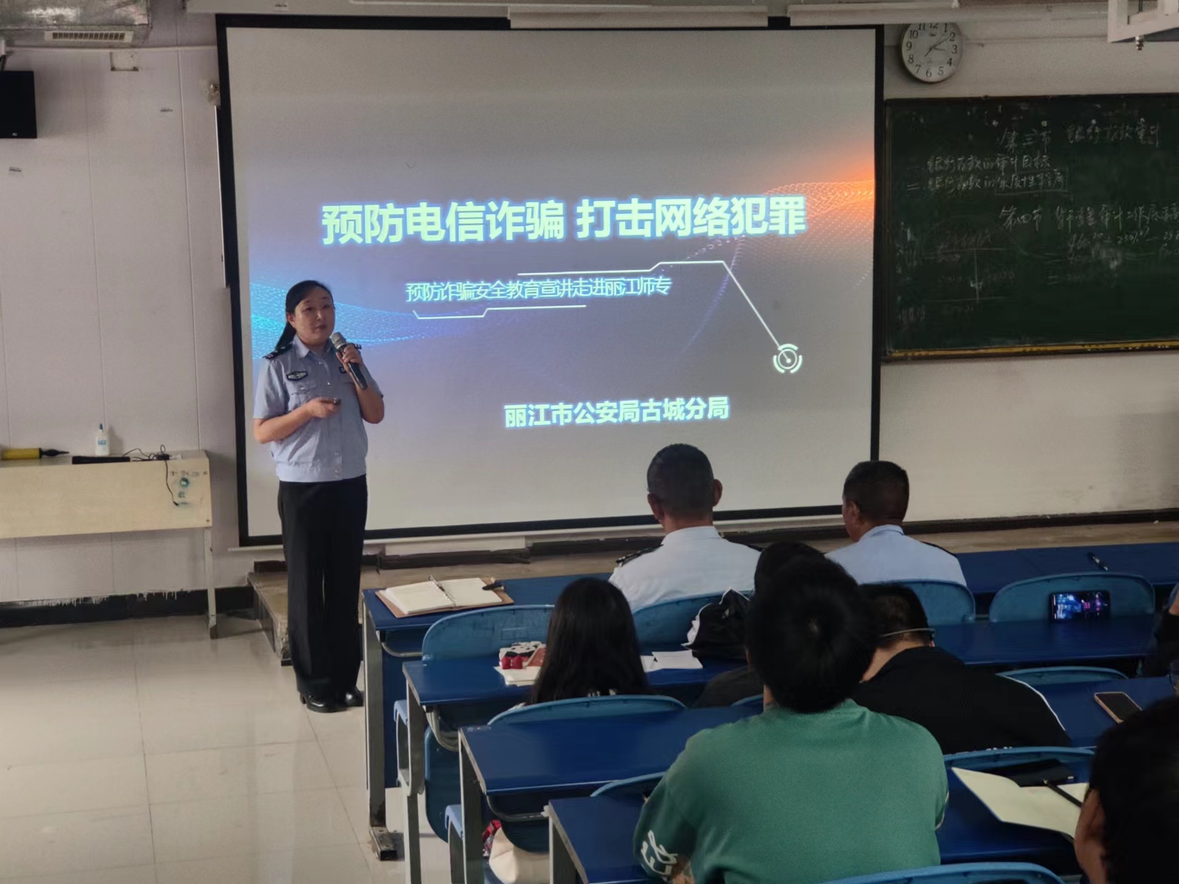 本次讲座是学校加强宣传教育、预防电信诈骗的一项重要举措。学校将继续加强防范电信诈骗的宣传教育,提高广大师生的防范意识,共同营造一个安全、和谐的校园环境。本次讲座还邀请到丽江市古城公安分局合成作战室、金山派出所、片区民警等11名警务人员参加。