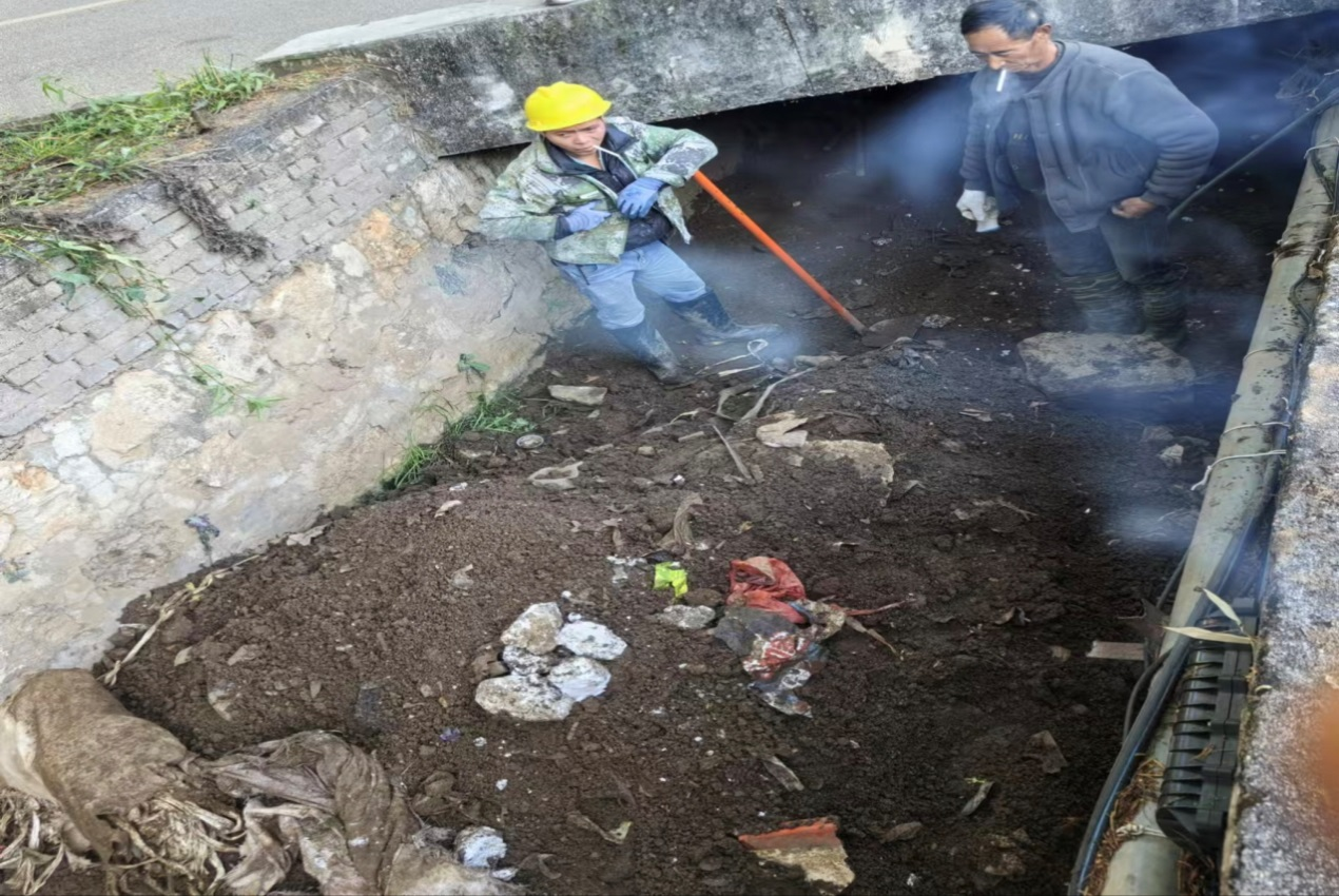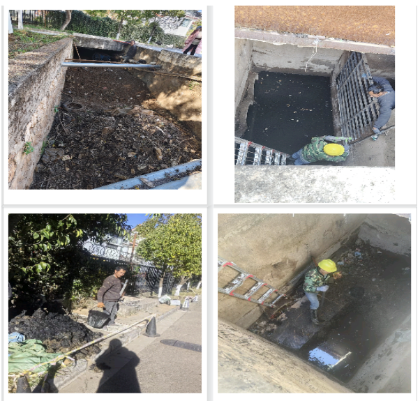 工作人员克服困难,不怕脏、不怕臭,深入排水沟内认真清理淤泥和各类杂物,并将清理出来的垃圾及时运走。